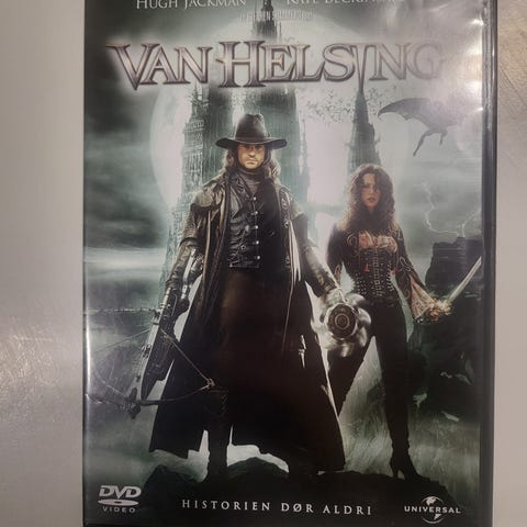 Van Helsing DVD med action- og eventyrinnhold. Inneholder to disker med ekstramateriale som bak kulissene, intervjuer, slettede scener og kommentarer. Passer for de som ønsker å se filmen i DVD-format.