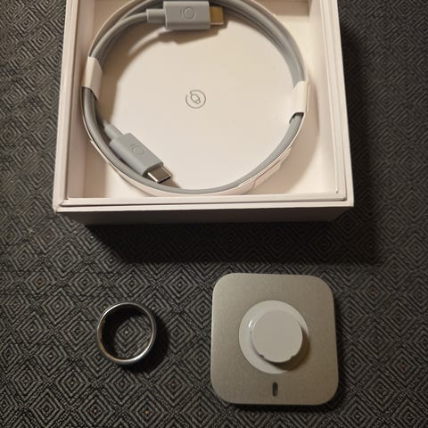 Ny og ubrukt Oura Ring generasjon 4 i sølv og størrelse 10 selges.