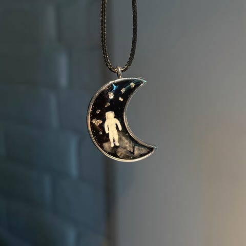 Selger et lite bokmerke med astronautmotiv. Pent og i god stand.