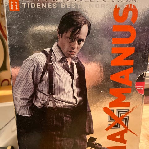 Max Manus DVD med norsk film om Max Manus, en kjent motstandsmann under andre verdenskrig. Inneholder historiske scener og dramatiseringer relatert til norsk motstandskamp.