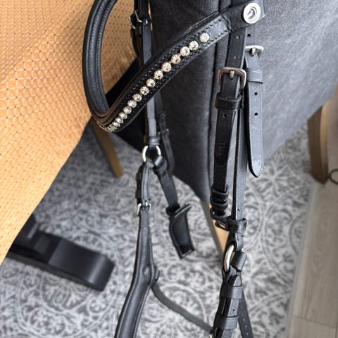 Svart hodelag med avtagbar nesereim i str full. Vil si den er mer liten full/ cob. Anatomisk utformet nakkestykke. Følger med HorseGuard pannereim, men ikke bitt.
