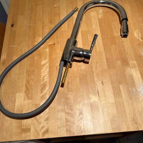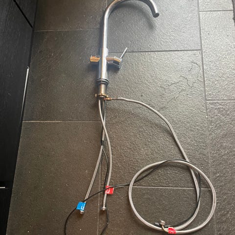 Adora Kjøkkenkran i bronsefarge. Designet for bruk på kjøkken, med høy tut og enkeltgrepshendel for temperatur- og vannmengdekontroll. Materiale og finish gir et moderne utseende.