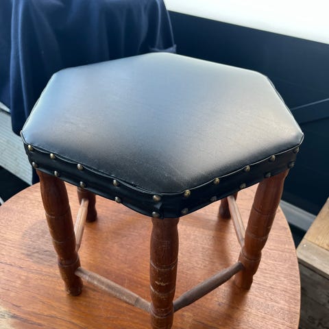 Men, litt litt retro, krakk av tre og skinn.