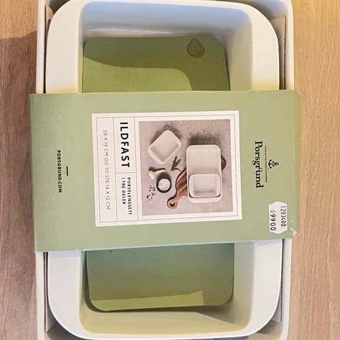 Hvit ildfast form eller serveringsfat. Kan brukes til servering av avlange matvarer eller som del av et buffeoppsett. Eller bruk til hva du ønsker. Hel og fin. Uten skår.