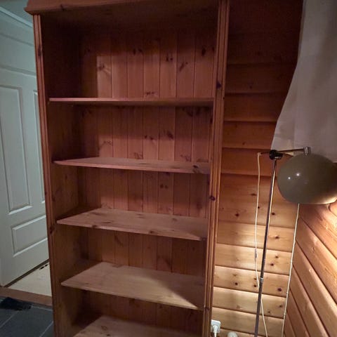 Bokhylle gis bort. Mangler den ene listen på siden. Fungerer ellers fint. Må hentes