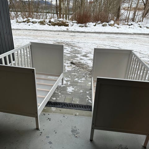 Barnesengen enkel å tilpasse etter barnets størrelse og evne til å sitte, klatre og stå oppreist i sengen. Madrass inkliudert i prisen.