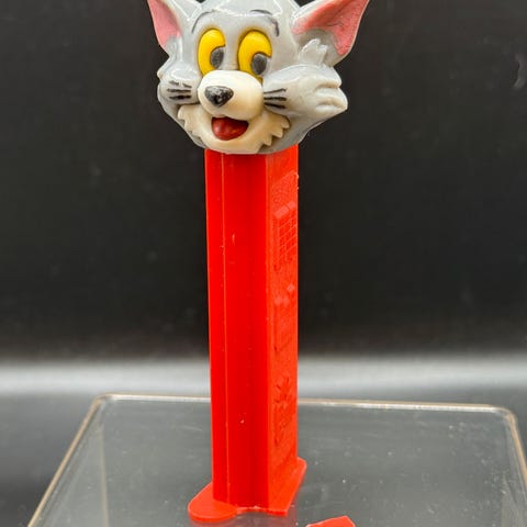 Selger en dispenser for Pez fra Tom og Jerry fra 90-tallet. Litt løs i bevegelsen når en vipper på hodet, men ellers fin.
