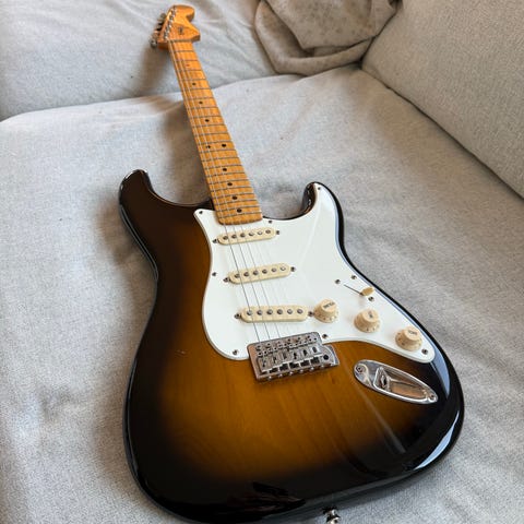 Alt i alt en kjempegod stratocaster med bedre pickuper, perfekt oppsett og blanke bånd som de ikke kommer orginalt.