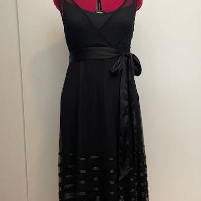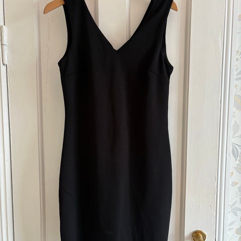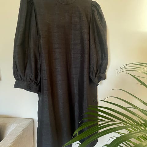 Vero Moda festkjole i størrelse M, laget av velour/fløyel. Kjolen har svart farge med striper og knyting på siden (som om det er en omslagskjole, uten å være det). Sitter veldig fint på.