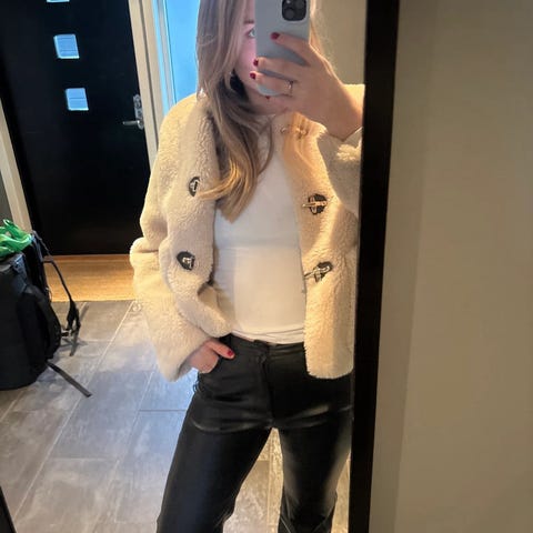 #litebrukt #marineblå #skinnbukse litt «metallic» look i nydelig lammeskinn str 38 #tight #bukse lite brukt fra danske #onstage ny pris kr 2200