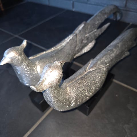 Selger en stor og dekorativ påfugl i metall med flotte detaljer og fin patina. Dette er et skikkelig statement-objekt som passer perfekt for deg som liker bohemsk, eklektisk eller litt annerledes interiør.