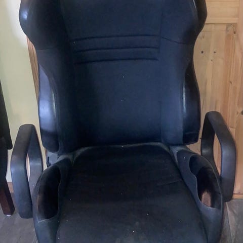 Jeg selger skrivebordet og stolen sammen, og legger med en helt ny lampe i gave.