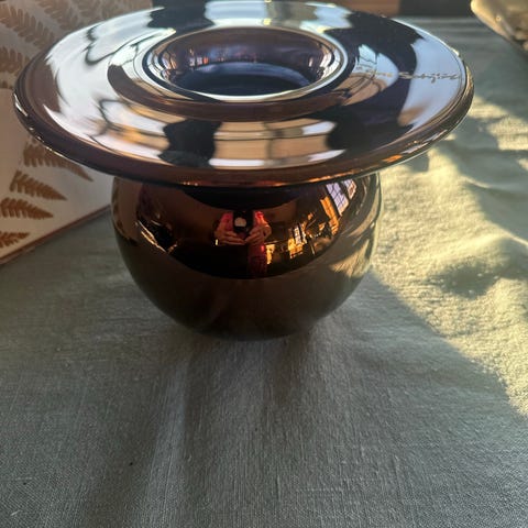 Glasset er i pen brukttilstand uten nagg eller sprekker, kun svake overflateriper fra normal bruk.