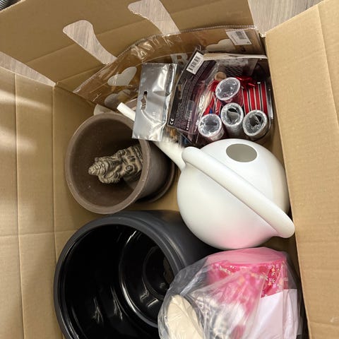 Krukken er ca. 6 cm høy og 6 cm i diameter, hel og uten skår, fin til tannpirkere, telys, små redskaper eller som pynt i hylle og kjøkkenvindu.