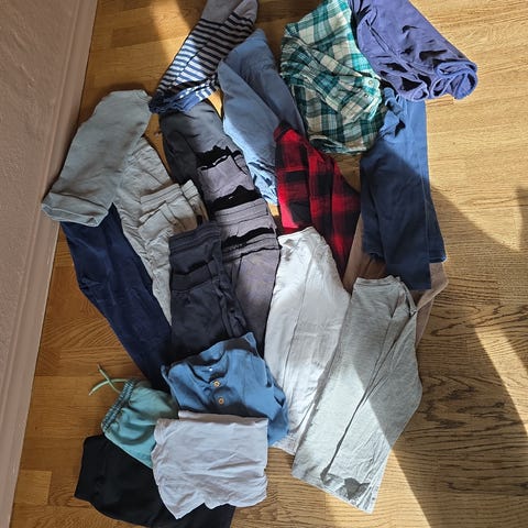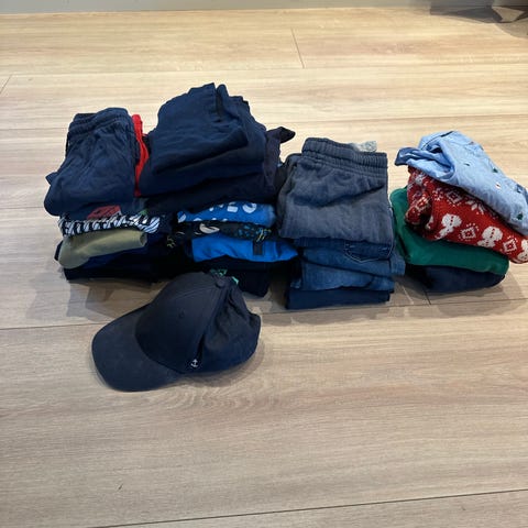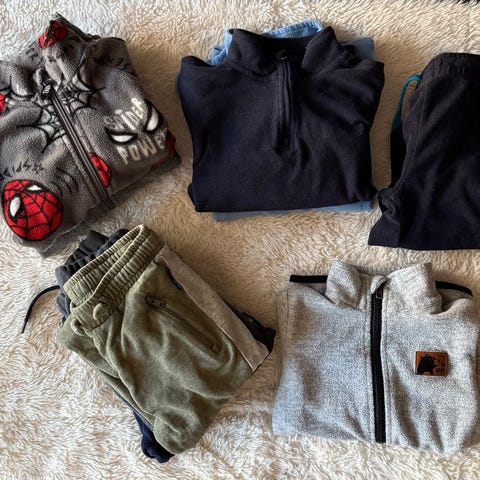 Klespakke med 5 fleecegensere og 5 fleecebukser selges samlet for 300,-.