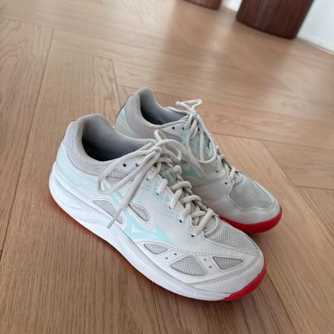 Mizuni Wave Luminous håndballsko i str 38,5 selges. Hvit og blå farge.