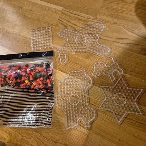 Perler eller stifter som settes ned i brettet og fyttes opp igjen. Fin motorikktrening, og har holdt våre litt engasjert noen minutter 😀