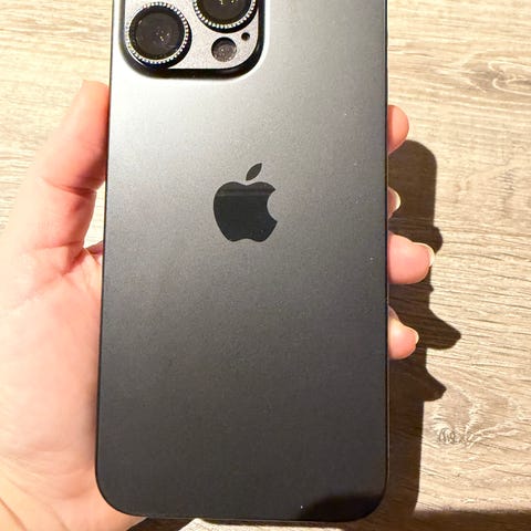 Apple iPhone 15 Pro Max mobiltelefon med 128 GB lagringskapasitet. Noen små merker her og der men ingen større skader/ mangler. Batteri på 89%. Kan leveres mellom skien og oslo.