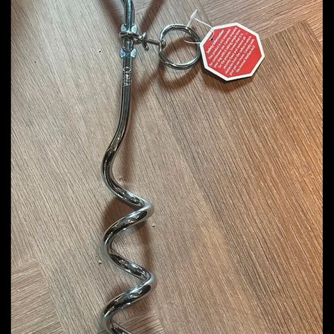 Ubrukt jordskrue til hund. Skrus enkelt ned i bakken og passer til de fleste kobbel og liner.