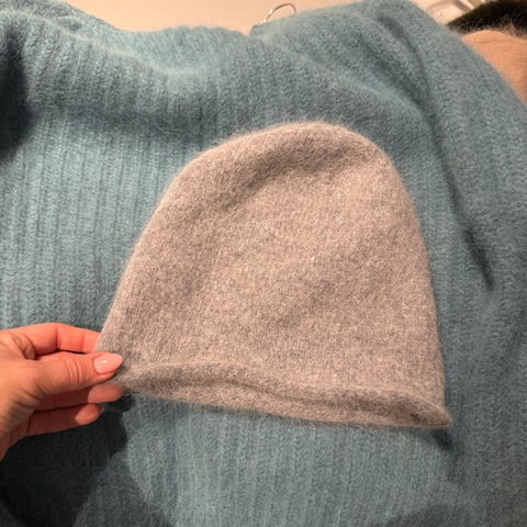 Fantastisk myk lue i eksklusiv angoraull, utrolig behagelig mot huden. Lua har en delikat hvit rosetefarge som gir et elegant og tidløst uttrykk. Lett, varm og perfekt for kjølige dager uten å føles tung. En nydelig kvalitetslue som fortjener et nytt hjem.