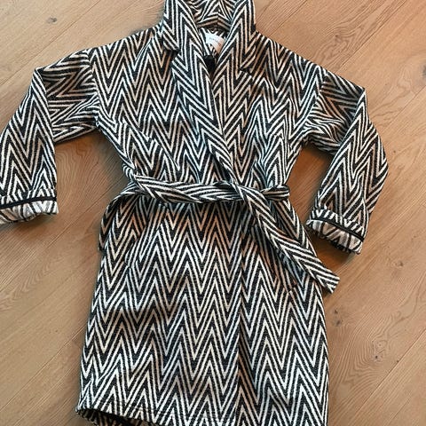 Nydelig silkemorgenkåpe fra Eva B. Bitzer selges ubrukt. Tykk silke med blonder, 3/4 arm i champagnefarge.