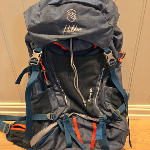 Bergans Birkebeineren 40 ryggsekk i grønn farge. Ryggsekken har en kapasitet på 40 liter og er designet for utendørs bruk. Den har justerbare stropper og polstret ryggpanel for komfort under bæring. Det følger med et regntrekk til sekken som vist på siste bilde