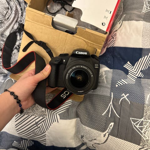 Selger et Canon EOS 1100D speilreflekskamera med 18–55 mm kit-objektiv. Følger også med kameraveske.