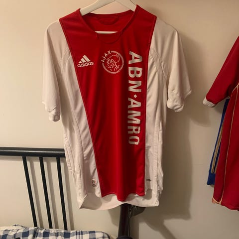 Ajax Fotballtrøye i størrelse S, med blå og hvit farge. Egnet for fotballbruk.