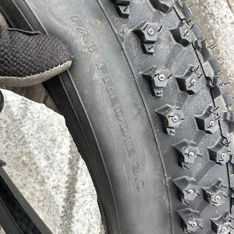 Selger Suomi Winter W240 26"x1.9 piggdekk. Dekkene er brukt en sesong og fremstår som pent brukt.