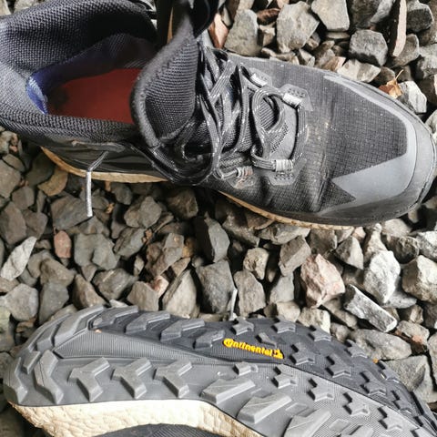 Pent brukte herresko i gore tex. Det vises at de er brukt. Likevel mye sko igjen.
