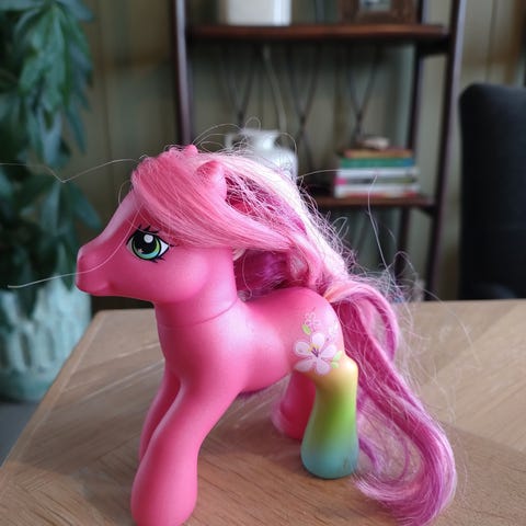 My Little Pony barn leketøysfigur i rosa med langt rosa hår. Figuren leveres med en liten kam og et tilbehørselement. Egnet for lek og samling.