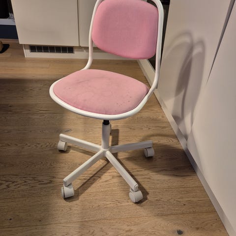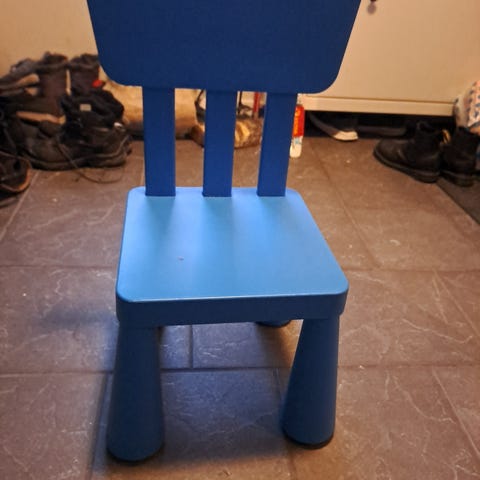 Godt brukt tegnebord og to stoler. Bordet er stødig. Den ene stolen er litt vaklete, og kan ha godt av litt lim. Den andre stolen er i orden.