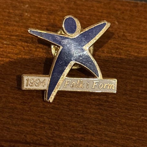 Dette er en "Jerusalem Lion of Judah-pin" , laget av gullfarget metall med et motiv av en løve og teksten "Jerusalem".