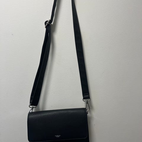 Praktisk og stilren liten veske fra Ulrika Sweden i sort skinnimitasjon. Vesken har flere glidelåslommer som gir god plass til mobil, nøkler, kort og småting. Justerbar skulderrem, kan brukes både som skulderveske og crossover.