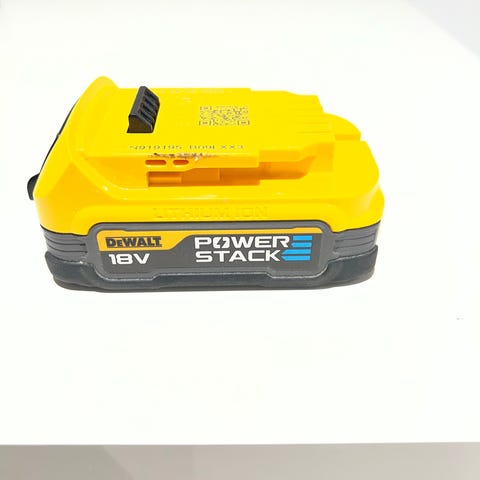 DeWalt PowerStack 18V batteri med kompakt design og høy energitetthet. Passer til kompatible DeWalt 18V verktøy. Batteriet er gult og svart og har en kapasitet som gir lang brukstid.
