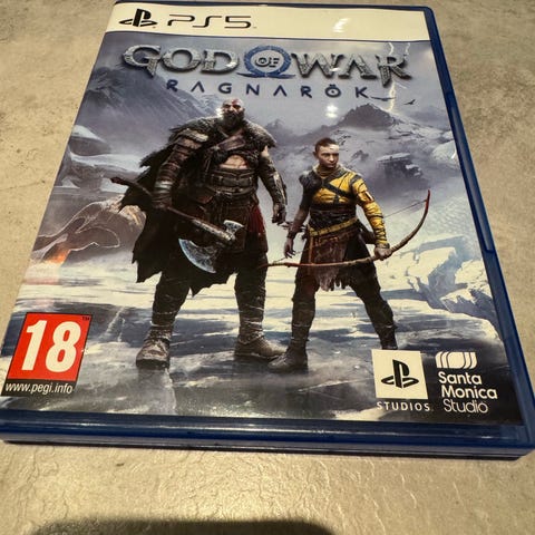 Sony God of War Ragnarok Playstation 5 spill. Spill for Playstation 5-konsoll, med aldersgrense 18 år. Inkluderer action- og eventyrinnhold utviklet av Santa Monica Studio.