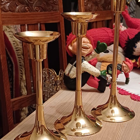 3 størrelser like kvalitets messing lysestaker til bruk av t lys. Er virkelig flotte og lyser opp et bord.