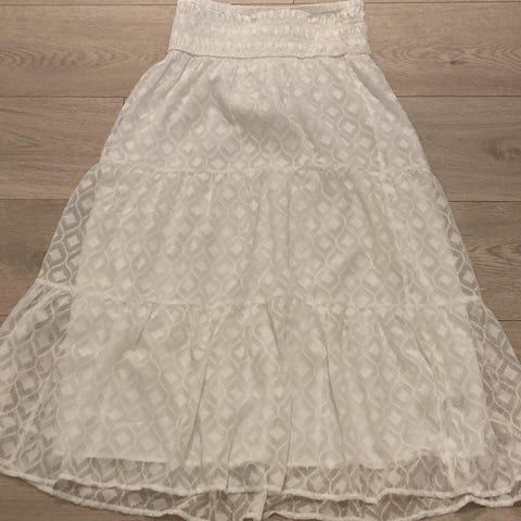 Gina Tricot paljettskjørt i sølvfarge, størrelse 152 for jente. Skjørtet er laget av paljetter og har elastisk midje. Passer til barn i angitt størrelse.