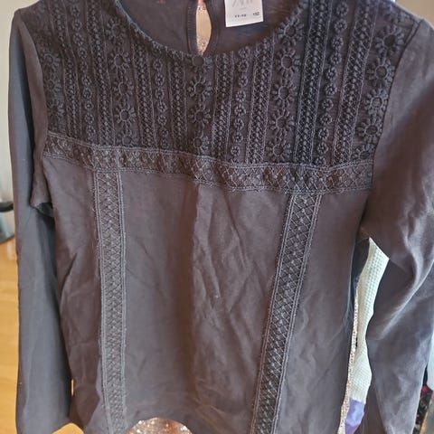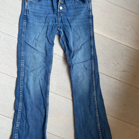 Zara bukse for jente i størrelse 152. Buksen er hvit med sorte striper og laget av bomull. Den har lommer og elastisk midje for komfort.