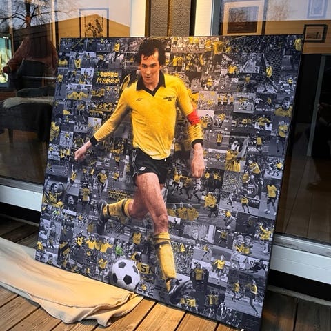 Et bilde som beskriver cupfinalen på Ullevål Stadion lørdag 6. desember. LSK vant, med hjelp av kanarifansen denne dagen. Bildet beskriver kampen med bilder og tribunelivet som kanarifansen sto for. Norges beste supportere. Format på bildet er 1m x 1m. Inkl tynn svart ramme.