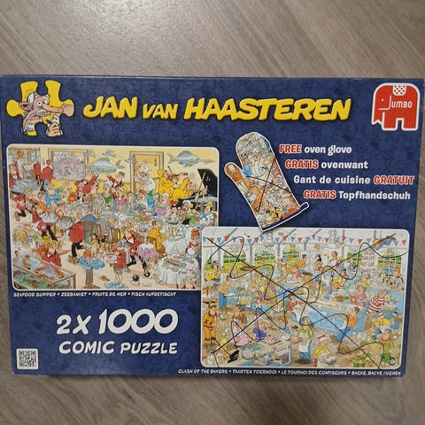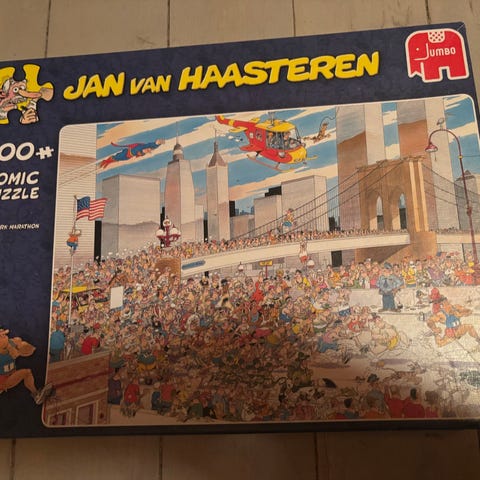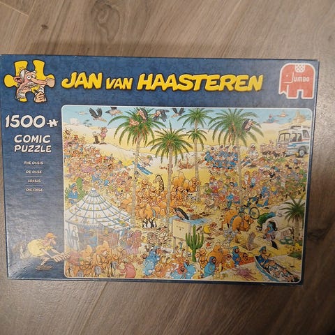 Jan van Haasteren puslespill med 1000 brikker. Motivet viser en detaljert og fargerik scene med mange figurer og aktiviteter. Passer for personer over 12 år