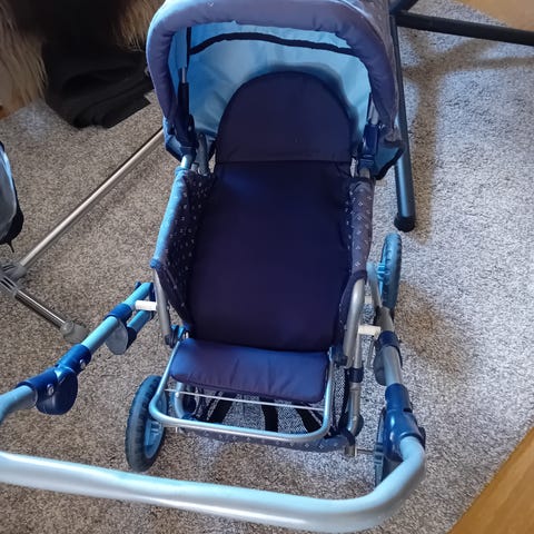 Pen gammel dukkeseng 30 cm lang, 17 cm bred og 19 cm høy. Kan sendes