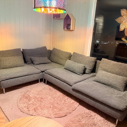 Stilren og komfortabel modulsofa fra IKEA, modell SÖDERHAMN. Sofaen er en treseter pluss puff Dette gir en god av fleksibel løsning med rikelig med plass.
