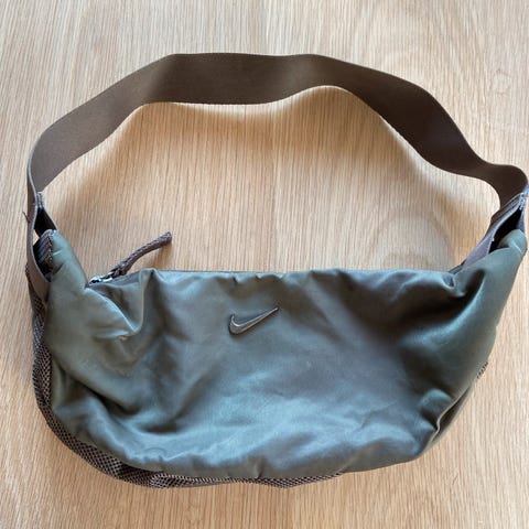 Nike dameveske laget av kunstlær. Vesken har et enkelt design med logo på fronten og to bærehåndtak. Egnet for daglig bruk.