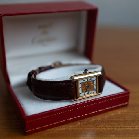 Cartier Must de Tank Vermeil Ref. 366001 fra 1980/1990 tallet. Klokken fikk nettopp nytt batteri og består kun av orginaldeler utenom remmen som er helt ny ettermarked. Klokken holder tiden godt og er i generelt god stand.
