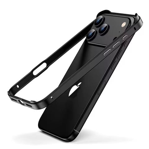 Telefondeksel med plass til kamera og trådløs lading. Dekselet har en teksturert overflate og er designet for beskyttelse av telefonens bakside.