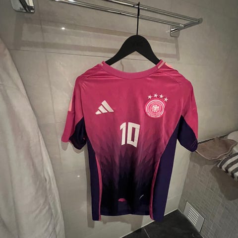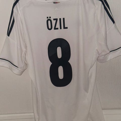 Adidas fotballtrøye i mørkegrønn farge, størrelse M for herre. Trøyen har nummer 8 og navnet Özil på ryggen, med tyske landslagsmerker og Adidas-logo. Materialet er lett og egnet for fotball.