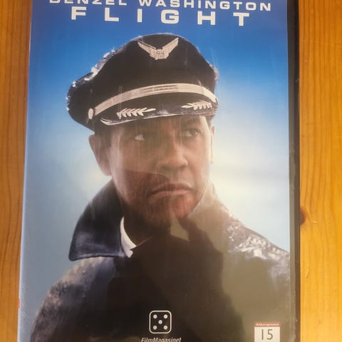Flight DVD film med skuespiller Denzel Washington på omslaget. Inneholder filmen Flight, med flere scener vist på baksiden av coveret. DVD-platen er inkludert i omslaget. Norsk tekst
