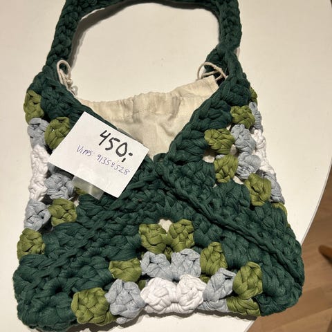 Selger en heklet veske, den er heklet av meg i 100% slitesterk bomull.