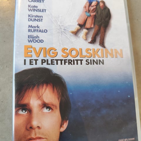 Evig Solskinn i et Plettfritt Sinn DVD-film. Filmformat på DVD, med cover og disk inkludert. Inneholder hovedroller spilt av Jim Carrey og Kate Winslet. Norsk tekst.